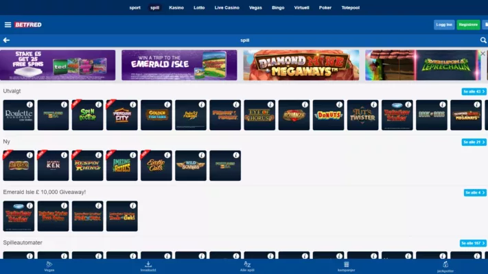 Betfred var aldri bare et casino. Det var et fullverdig spillsenter. Her kunne du spille på alt fra odds og live sport til bingo, poker, lotto, spilleautomater og live casino. De dekket med andre ord omtrent alt som finnes innen nettspill. Jeg har sjelden sett et så bredt spekter i én og samme plattform.