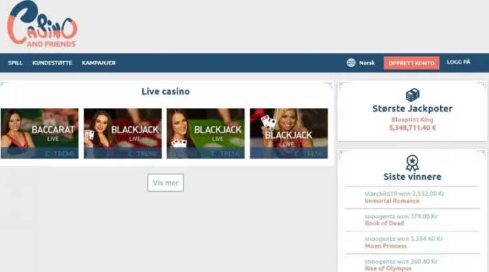 Vi har dessverre fått tilbakemeldinger fra spillere hos Casino and Friends at de ikke er til å stole på. Vi kan derfor ikke gå god for dette casinoet og anbefaler heller at våre lesere prøver lykken på at av våre mange andre norske casinoer!