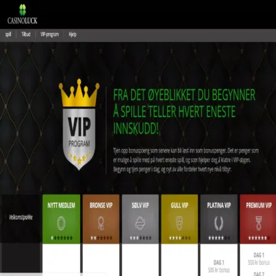 CasinoLuck har utviklet et VIP-program som vil belønne deres lojale spillere. Dette er et insentiv for spillere å komme tilbake til casinoet og fortsette å spille der. Etter hvert som du spiller mer og mer vil du stige i nivåer og jo høyere nivå du ligger på, jo bedre belønninger vil du få! Vi snakker om belønninger som innskuddsbonuser, gratisspinn, personlig VIP-service, høyere uttaksgrenser og mye mer!