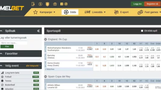Melbet er et norske casino som tilbyr både casino-spill i form av spilleautomater, live casino og bordspill, og også oddsspill, som inkluderer alle former for sport samt e-sport.