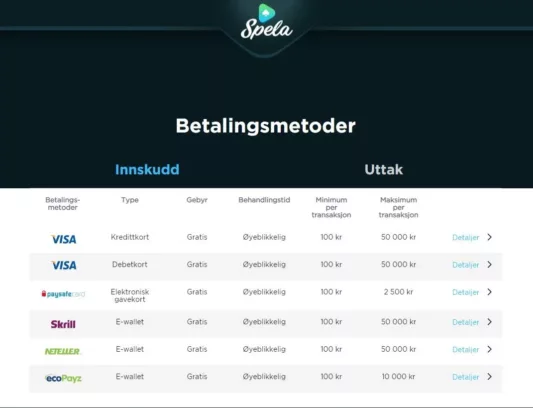 Noe av det viktigste man må forsikre seg om ved et nytt casino er sikkerheten og lignende. Derfor er det betryggende og se at man kan bruke alle de meste vanlige, trygge og sikre betalingsløsningene på casino hos Spela. Her kan du benytte metoder som følgende: